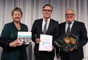 Ein weiteres Highlight des Tages: die Auszeichnung des 15.000sten MINT-Botschafters von „MINT Zukunft schaffen“. Über den Preis freuen durfte sich Berthold Porath, Direktor des Dornier Museums in Friedrichshafen. Er nahm die Urkunde aus den Händen von Sylvia Löhrmann entgegen, Präsidentin der Kultusministerkonferenz sowie Ministerin für Schule und Weiterbildung in Nordrhein-Westfalen. Die Laudatio hielt Thomas Sattelberger.