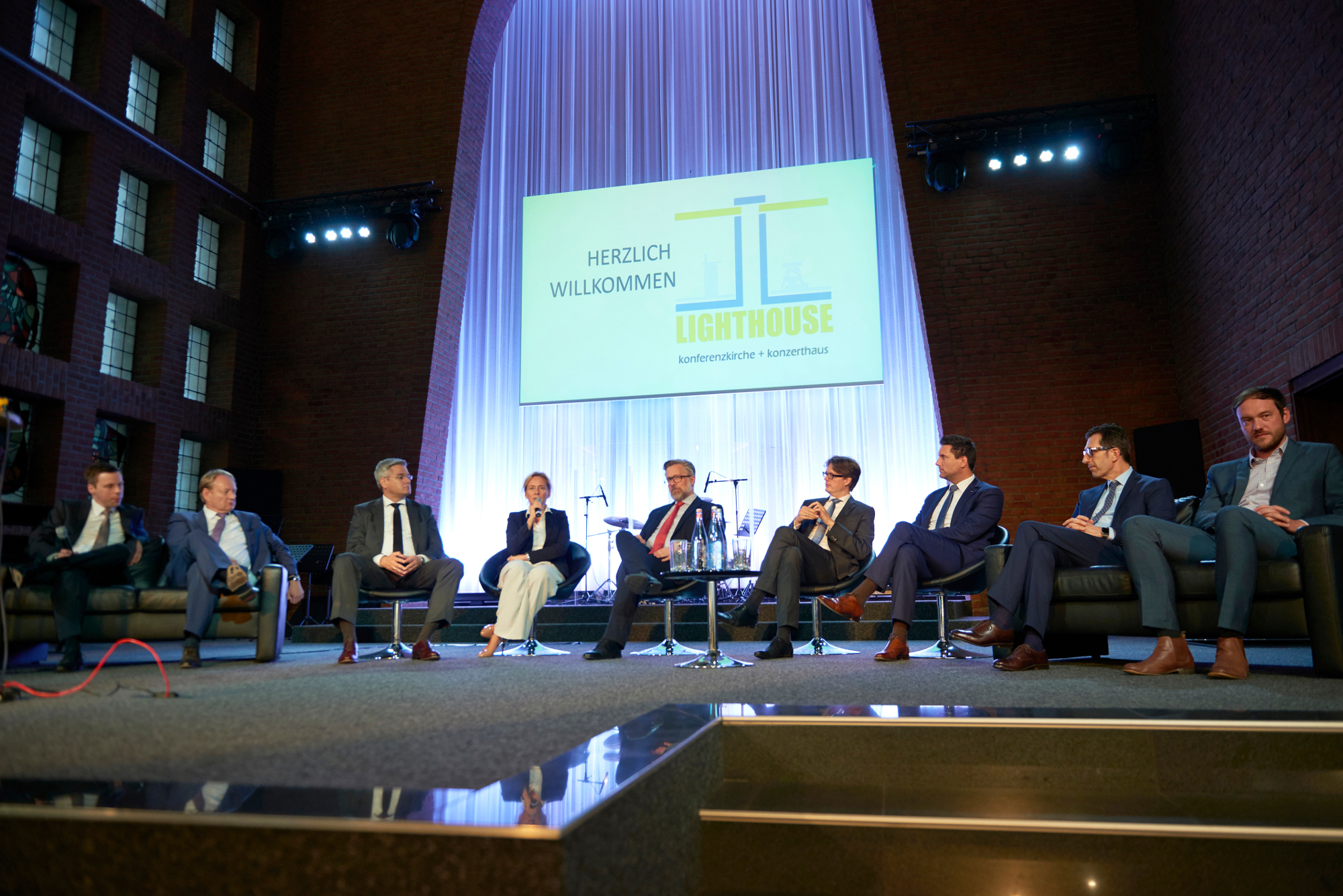 Wie in der Praxis mit diesen Vor- und Nachteilen umzugehen ist und was die Digitalisierung konkret für Essen bedeutet, steht im Zentrum der sich anschließenden Dialogrunde. Nach einer Anmoderation durch Prof. Dr. Stefan Heinemann entwickelt sich eine intensive Diskussion, an der neben den drei Referenten weitere Expertinnen und Experten teilnehmen: Ulrich Kanders (Hauptgeschäftsführer EUV Essener Unternehmensverband), Dr. Myriam Jahn (Geschäftsführerin ifm datalink), Nomo Braun (Senior Consultant Agiplan GmbH), Christoph Tönsgerlemann (Wirtschaftsprüfer / Steuerberater, Vorsitzender des Vorstands ETL AG Wirtschaftsprüfungsgesellschaft) und Björn Zeien (Leitung Stabsbereich Politik und strategische Netzwerke opta data Gruppe).