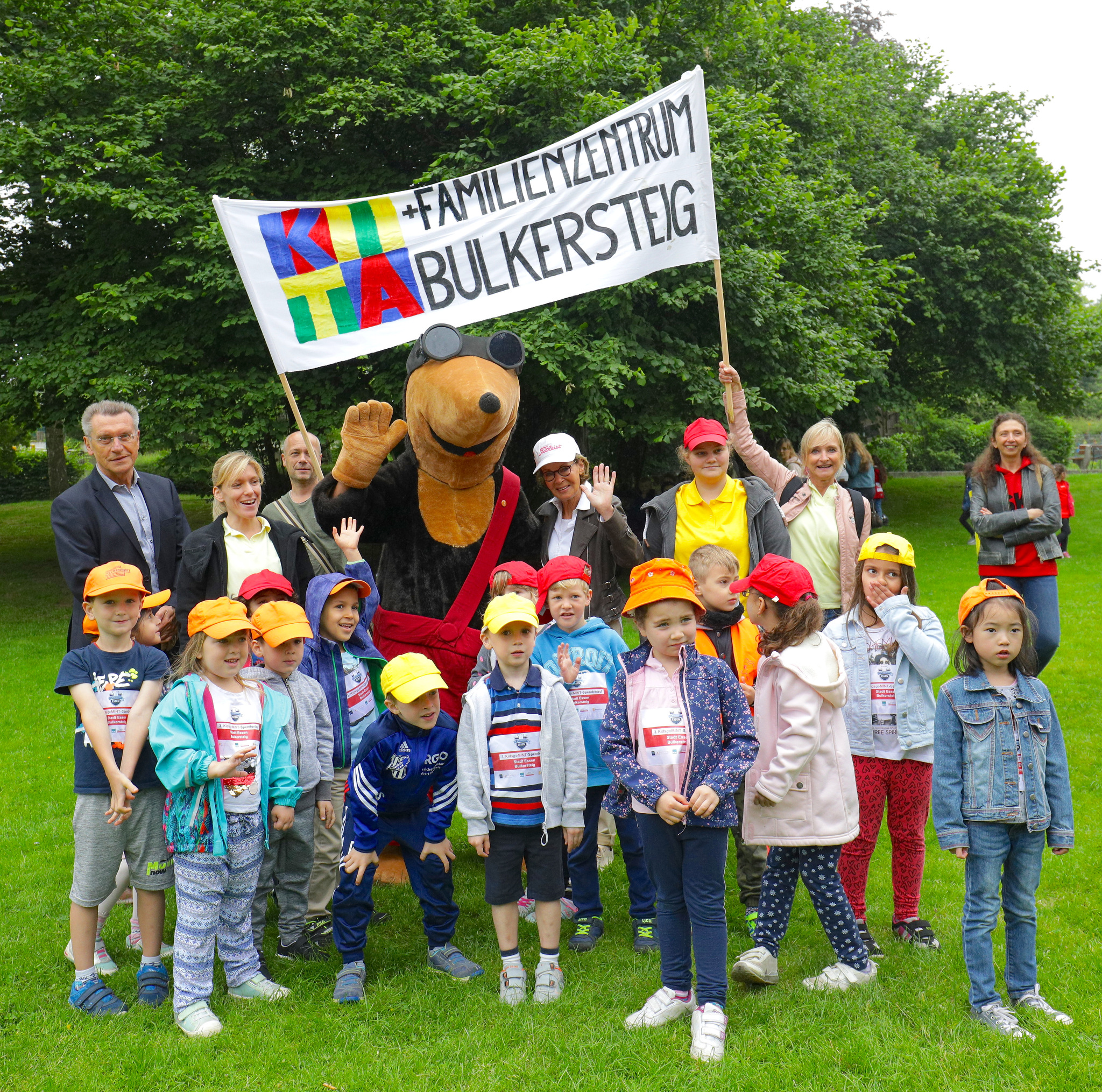 Gespannt betraten die Kindergartenkinder den Ort des Geschehens und erfreuten sich an Max, dem Maulwurf – dem Maskottchen der Bildungsinitiative KidsgoMINT –, den aufgestellten Hüpfburgen, Bewegungsspielen und dem „feuerroten Spielmobil“. Diese zusätzlichen Attraktionen wurden vom Deutschen Kinderschutzbund Ortsverband Essen e. V. und der Jugendberufshilfe Essen gGmbH gestellt.