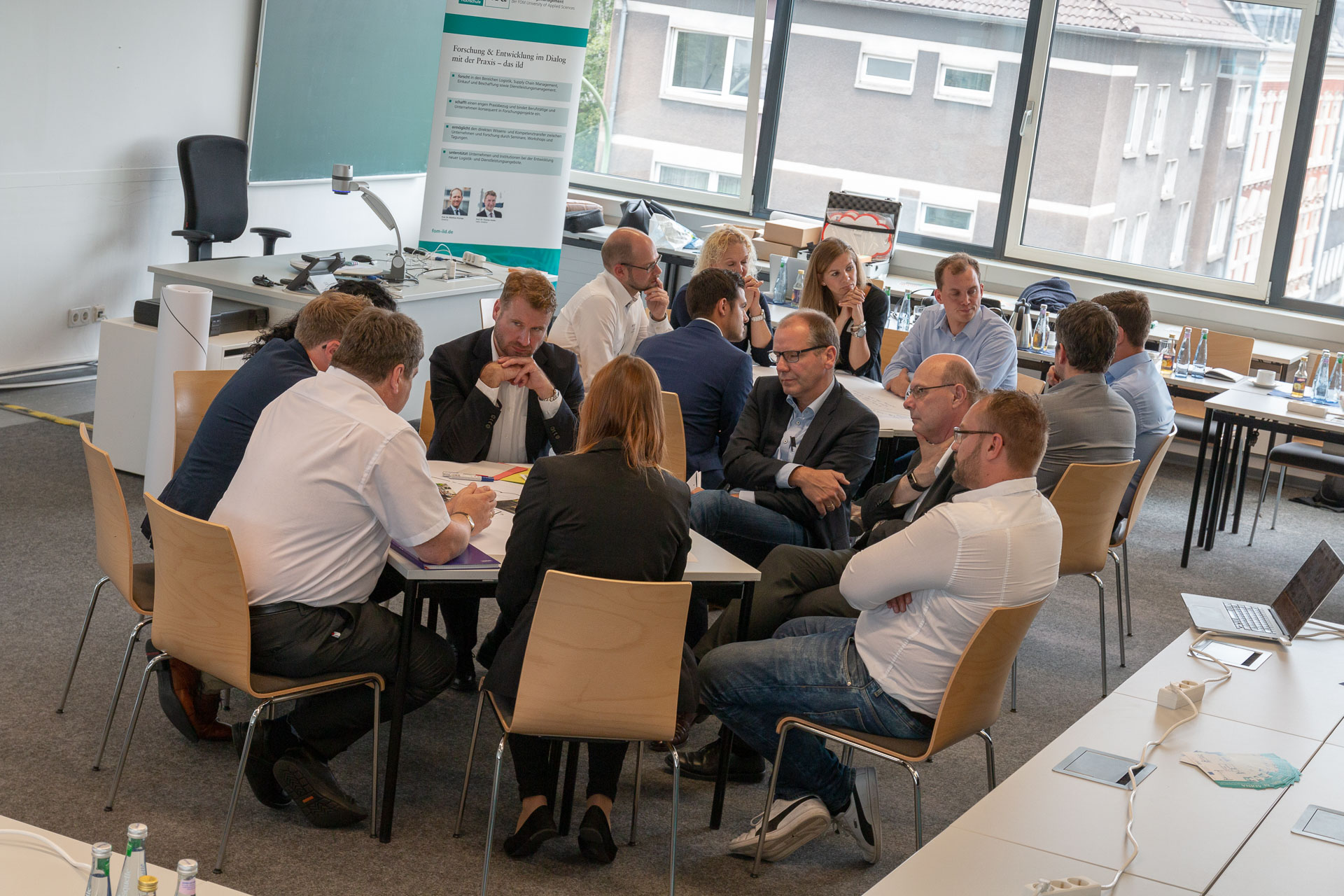 Nach einer Einführung in die „World Café“-Methode wurden jeweils drei Arbeitstische mit wechselnden Runden und Teilnehmenden festgelegt. Die daraus resultierenden ersten Lösungsansätze für die Praxispartner konnten im Anschluss diskutiert werden.