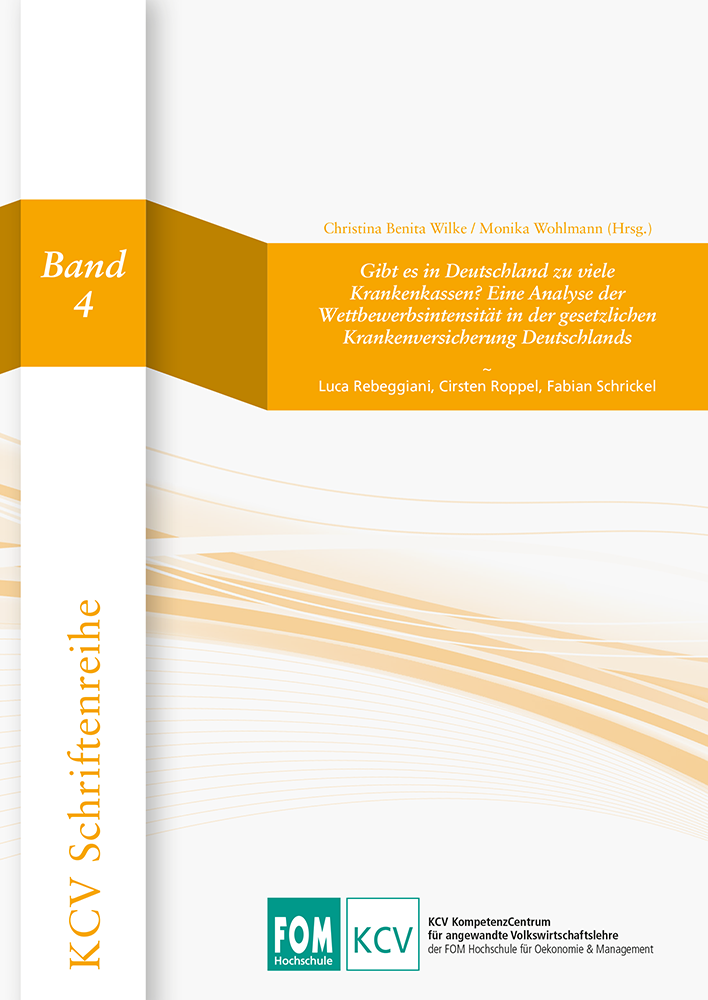 Rebeggiani, L. / Roppel, C. / Schrickel, F. (2022): Gibt es in Deutschland zu viele Krankenkassen? Eine Analyse der Wettbewerbsintensität in der gesetzlichen Krankenversicherung Deutschlands, in: Wilke, C. B. / Wohlmann, M. (Hrsg.): KCV Schriftenreihe, Band 4, 2022, ISSN (eBook) 2701-9411, ISBN (eBook) 978-3-89275-255-4